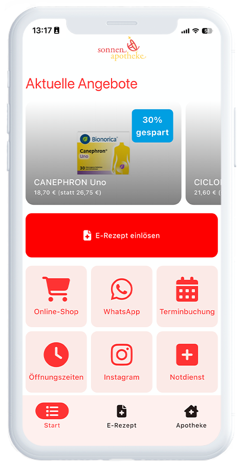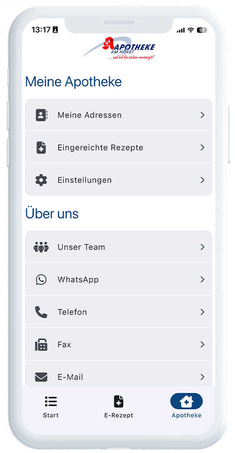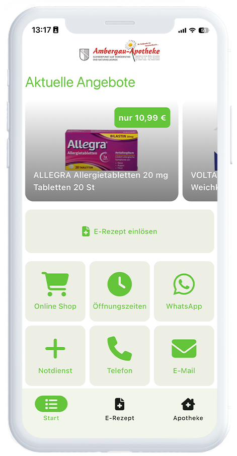 Was apoapp+ beinhaltet: Ihre App im Apple App Store & Google Play Store – im Look & Branding Ihrer Apotheke E-Rezept-Einlösung per eGK – einfach, direkt, sicher CardLink für nahtlose Kundenzuordnung Push-Nachrichten für Aktionen, Services & Gesundheitsthemen Couponing-Funktion zur Verkaufsförderung Alle Basisinfos wie Öffnungszeiten, Leistungen & Kontaktdaten jederzeit griffbereit
